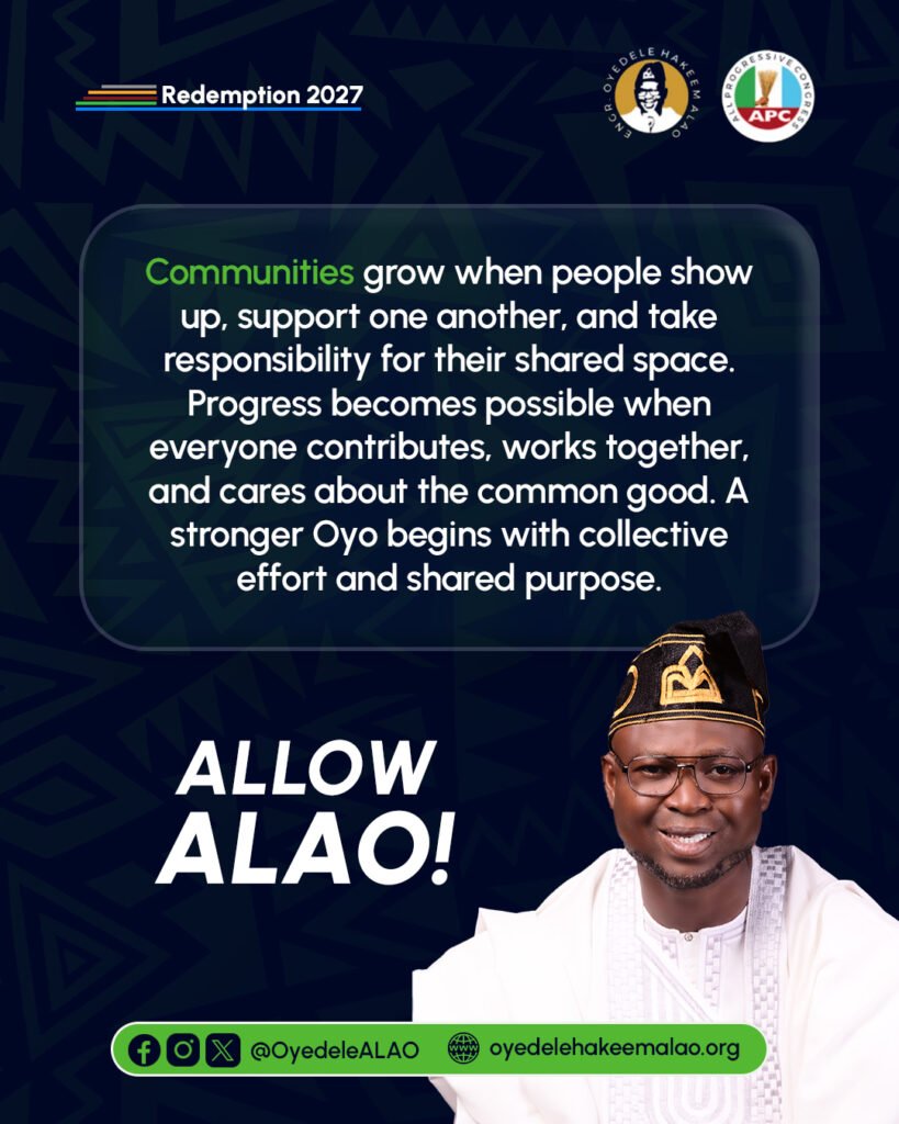 Progress takes root when we take personal responsibility for our environment, treating our streets and public spaces with the same care we give our homes. It happens when every resident—from the market woman to the student—feels included and committed to the common good. Oyo becomes stronger not by chance, but by choice: when participation replaces apathy, cooperation bridges our divides, and a shared purpose guides how we live, work, and thrive together.