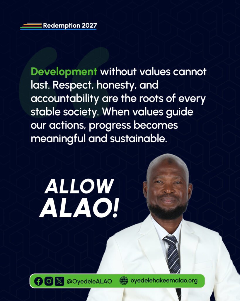 Development without values cannot stand the test of time. Roads, buildings, and policies may bring temporary change, but it is respect, honesty, and accountability that sustain real progress in any society.